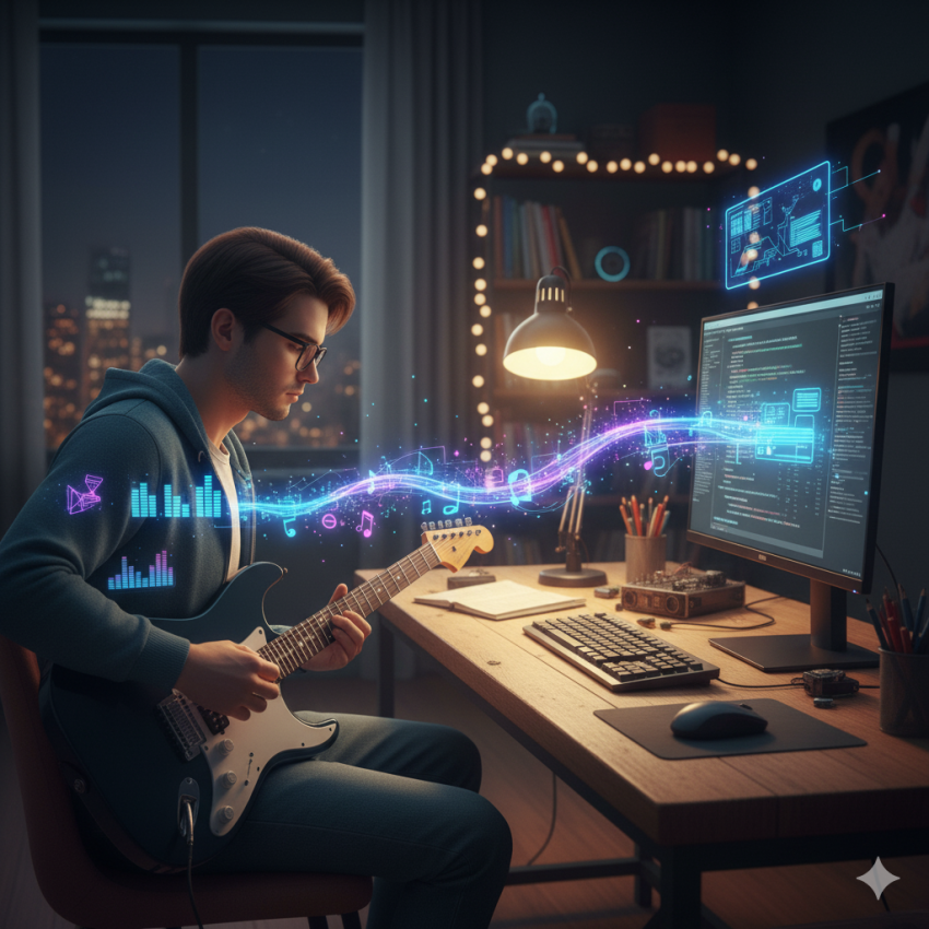 İlk başta ikisi tamamen alakasız görünür. Biri müzik, diğeri mantık. Ama aslında gitar çalmak da, kod yazmak da ritim ister, pratik ister ve hata yapmaktan korkmamayı öğretir. Her iki uğraş da seni “anda” tutar. Bir akoru tam oturtamadığında da, kod hata verdiğinde de sabırlı olman gerekir. Ve sonunda, o tını ya da o çalışan kod…